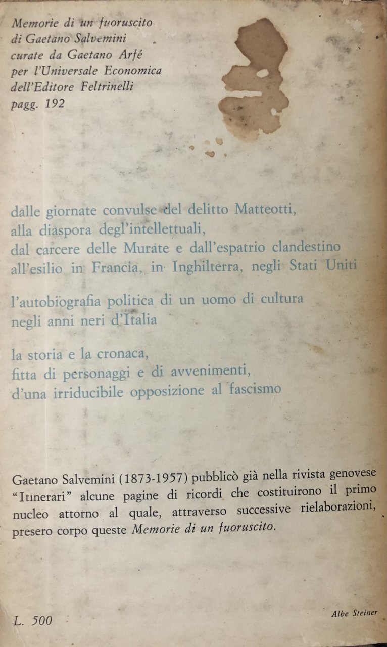 Memorie di un fuoruscito. | Libros antiguos y modernos | Gaetano Salvemini, ,Gaetano Salvemini