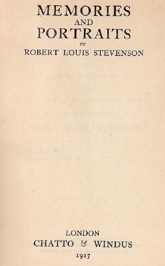 Memories and portraits | Libros antiguos y modernos | STEVENSON, Robert Louis (Edimburgo, 1850 - Vailima, 1894),
