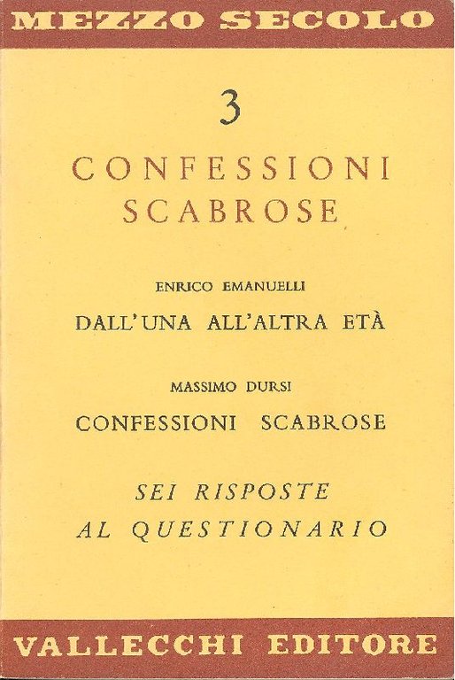 Rivista diretta da Carlo Bo, Enrico Emanuelli e Giancarlo Vigorelli. Scritti di Enrico Emanuelli (Dall'una all'altra età) e Massimo Dursi (Confessioni scabrose) . 16mo. pp. 190. . Molto buono (Very Good). . . .