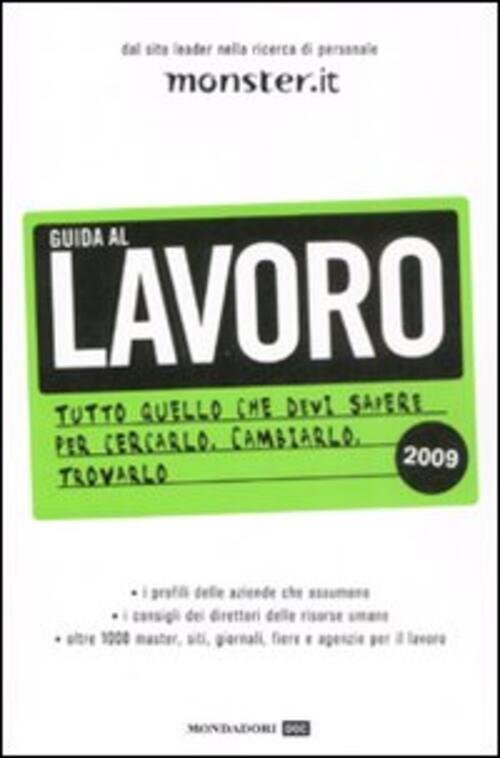 Dettagli Libro<br><br>Sku: PZZLB97933<br>ISBN: 9788804584353<br>Titolo: Monster.It. Guida Al Lavoro<br>Autore: S. Zanella<br>Editore: Mondadori<br>Anno: 2008<br>Pagine: 335<br>Formato: Brossura<br><br>Come faccio a scrivere un curriculum anticestinatura? Perché non mi chiamano mai? Quali domande mi faranno al colloquio? Dove vado a cercare le offerte più adatte a me? Quali contratti mi possono offrire? Che cosa vogliono davvero le aziende? E che cosa faccio se.? Trovare lavoro è più facile di quello che si pensa se solo si sa come farlo. Dal sito leader per la ricerca di personale una guida pratica per trovare finalmente il lavoro della vita.