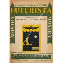 Mostra Futurista. Pittura, scultura, areopittura. Firenze, Galleria d'arte, 28 febbraio 1931 con conferenza di F. T. Marinetti sulla pittura di Marasco sulla scultura di Thayaht