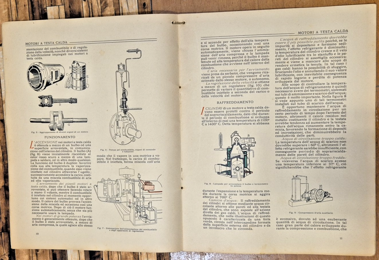 MOTORI A TESTA CALDA a superficie di ignizione. Vacuum Oil Company Editore, I edizione 1924. 22 pagine. Illustrazioni in bianco e nero e colori nel testo. Copertina editoriale in brossura. Stato di conservazione: molto buono (pagine normalmente ingiallite).