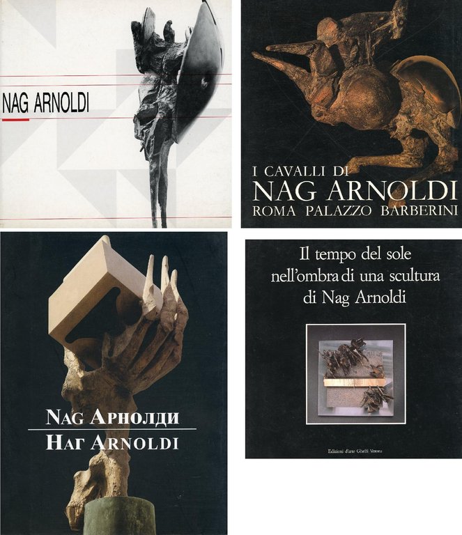 Volume edito in occasione della mostra Alla Galleria Civica d'Arte moderna, Palazzo dei Diamanti, Ferrara, 21 gennaio - 25 febbraio 1990. Testi di Luciano Caramel e Franco Farina. Cenni critici e catalogo delle esposizioni. Con 52 riproduzioni delle opere in nero a piena pagina . 8vo. pp. 96. . Ottimo (Fine). . . . Si aggiungono altri 3 cataloghi dell'Artista: 1) I cavalli di Nag Arnoldi. Catalogo della mostra al Palazzo Barberini, Roma, 1984; 2) Nag Arnoldi, Catalodo della mostra all'Accademia delle Belle Arti, San Pietroburgo, 2003; 3) Il tempo del sole nell'ombra di una scultura di Nag Arnoldi. Edizione Ghelfi, 1991