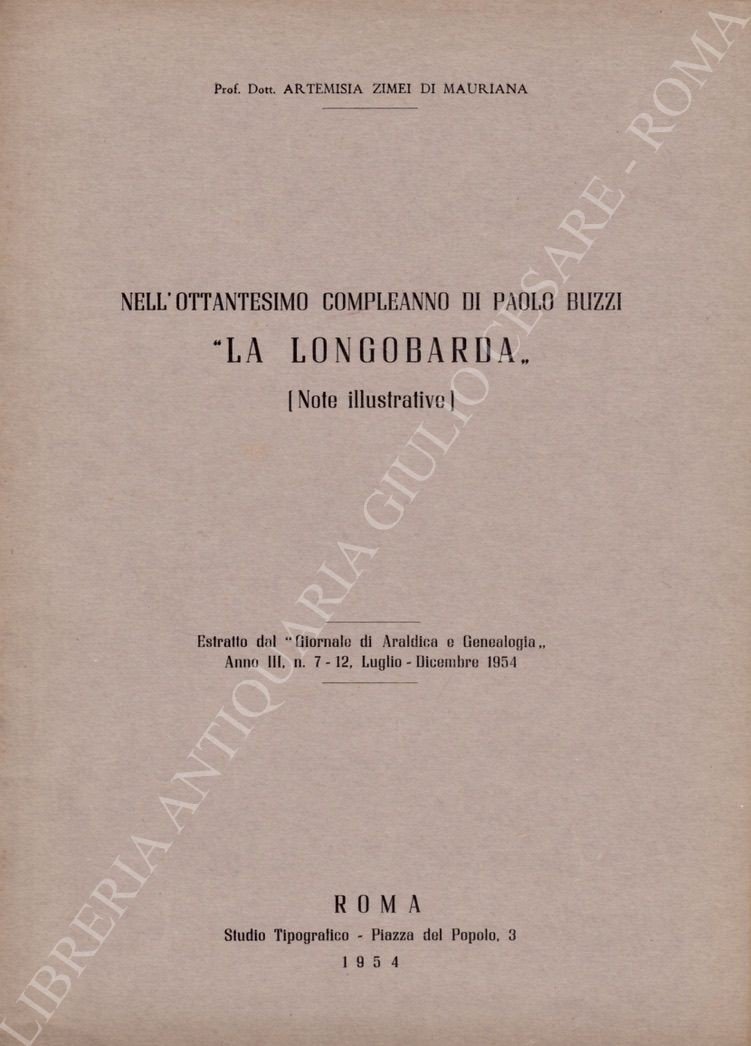 Nell'ottantesimo compleanno di Paolo Buzzi "La Longobarda" (Note illustrative) | Libros antiguos y modernos | Zimei Di Mauriana Artemisia