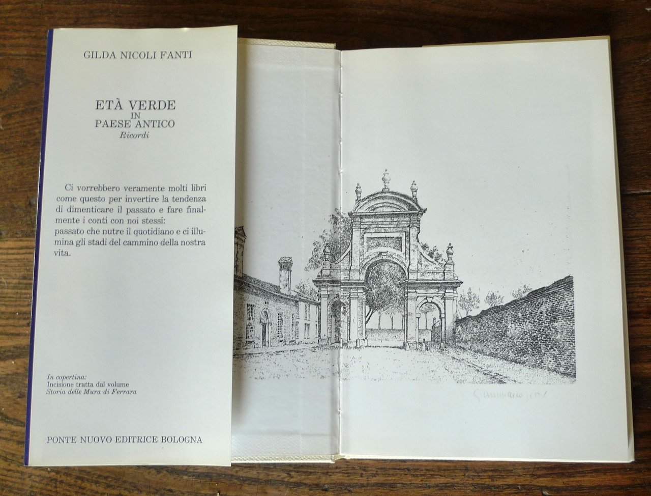 Gilda Nicoli Fanti,ETÀ VERDE IN PAESE ANTICO.Monestirolo 1889, Ferrara 1910,Bologna 1919.Ponte Nuovo Editrice, Bologna 1995,prima edizione,copertina rigida con sovraccoperta, rilegatura in tela, 21,5x14 cm., pp.91,peso: g.350cod.10320CONDIZIONI DEL LIBRO: ottime,dedica a penna all'occhiello