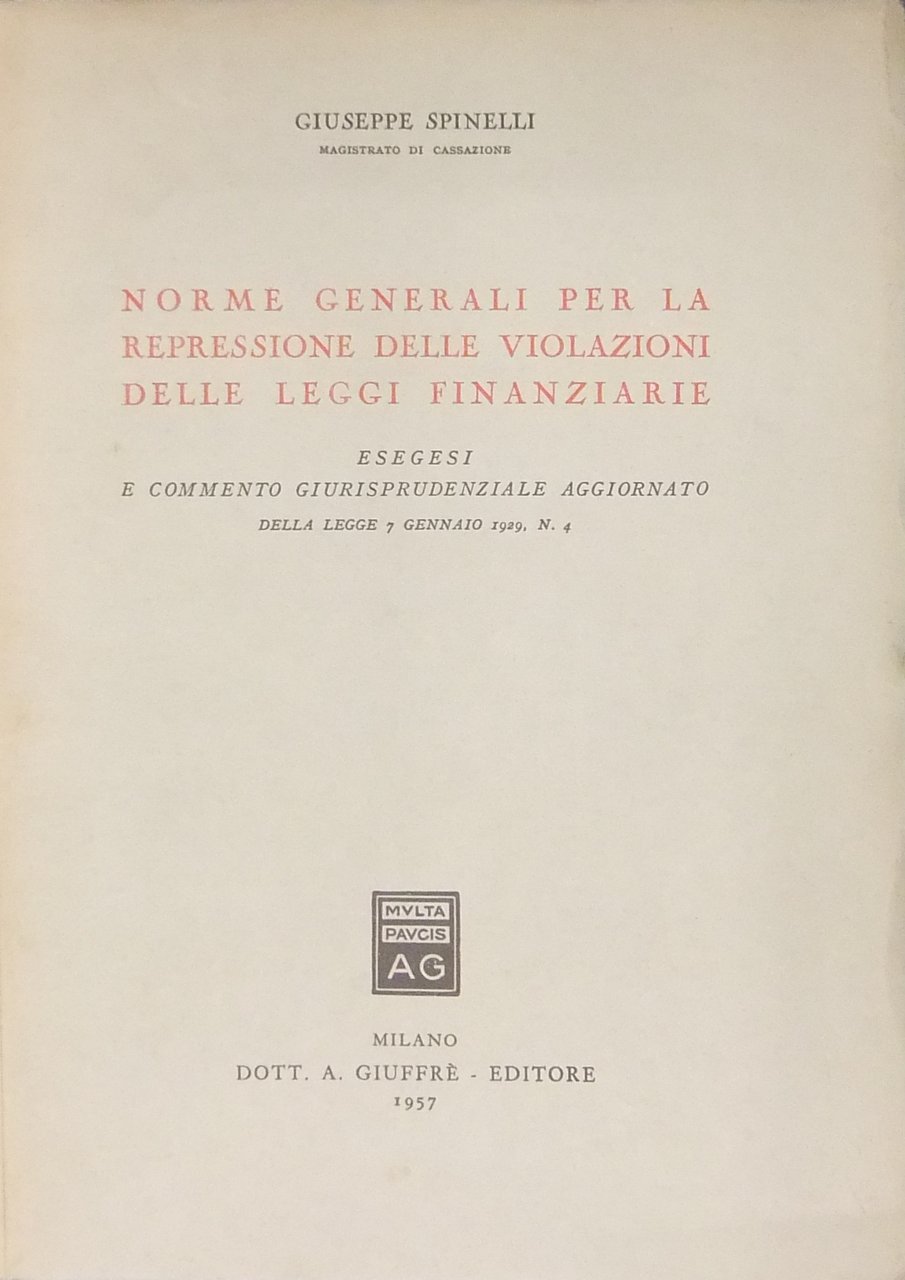 Norme generali per la repressione delle violazioni delle leggi finanziarie. Esegesi e commento giurisprudenziale aggiornato della legge 7 gennaio 1929 N. 4 | Libros antiguos y modernos | Spinelli Giuseppe