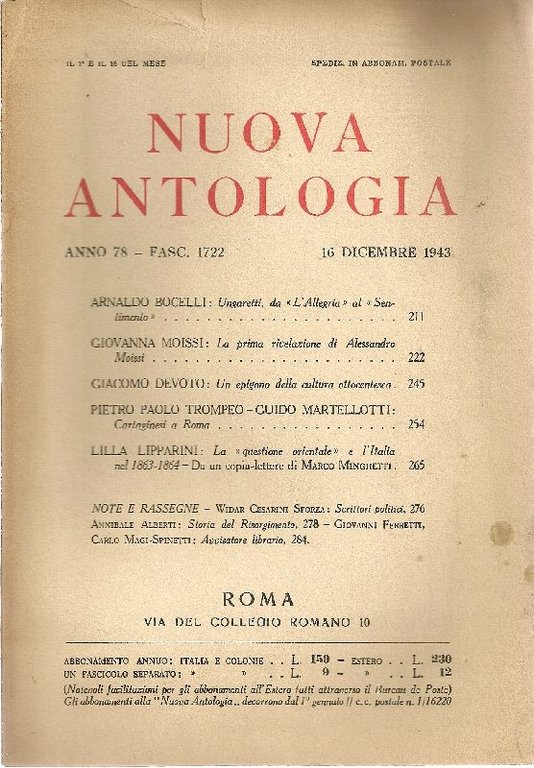 Nuova Antologia. 16 dicembre 1943, Anno 78, Fascicolo 1722