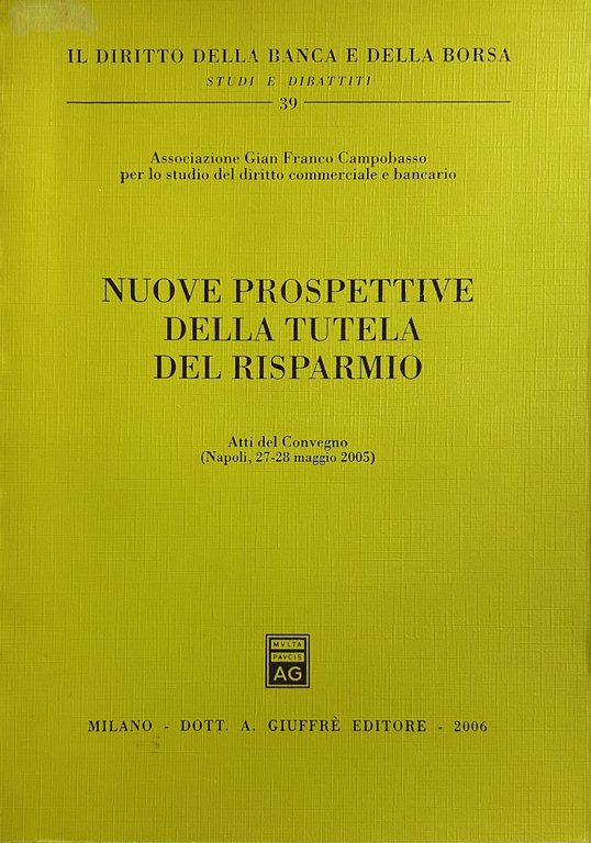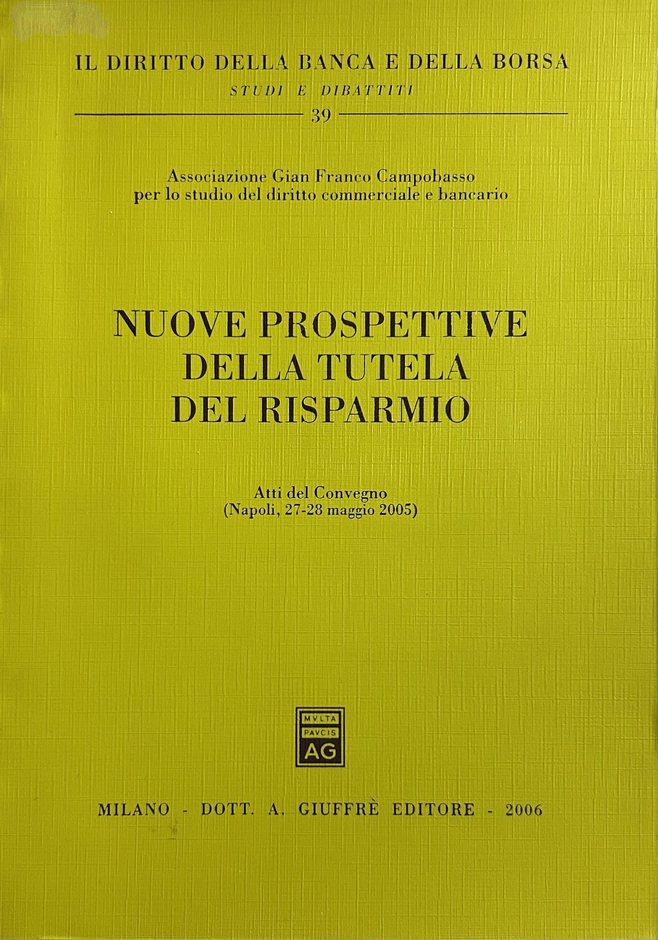Nuove prospettive della tutela del risparmio. Atti del Convegno (Napoli, 27-28 maggio 2005) | Libros antiguos y modernos | Abbadessa P. - Carbone S.M. - Clarich M. - Ferro Luzzi P. - Guar, Ino G. - Minervini G. - Portale G.B. Et Alii