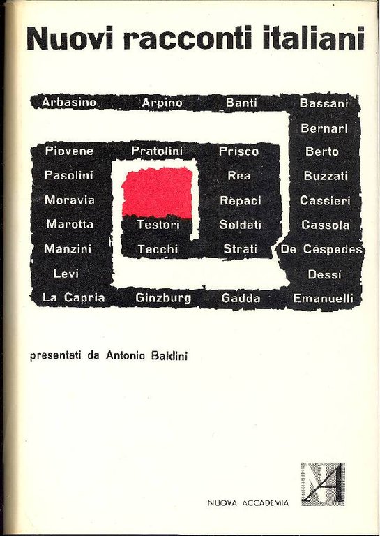 2 volumi. In appendice brevi biografie degli autori. Racconti di A. Arbasino, G. Arpino, R. Bacchelli, A.Banti, G. Bassani, C. Bernari, G. Berto, L. Bianciardi, L. Bigiaretti, L. Bonanni, D. Buzzati, G. Cassieri, C. Cassola, A. De Cespedes, F. Cialente, G. Comisso, O. del Buono, G. Dessì, M. Devena, E. Emmanuelli, C.E. Gadda, N. Ginzburg, R. La Capria, C. Levi, G. Manzini, G. Marotta, L. Mastronardi, A. Moravia, G. Parise, P.P.Pasolini, E. Patti, G. Piovene, M. Pomilio, V. Pratolini, M. Prisco, P.A. Quarantotti Gambini, U.P. Quintavalle, D. Rea, L. Rèpaci, L. Sciascia, F. Seminara, U. Simonetta, M. Soldati, S. Strati, B. Tecchi, G. Testori, M. Tobino, D. Troisi, R. Viganò. Opera pubblicata dal 1962 al 1963 . 8vo. pp. 549 + 482. . Ottimo (Fine). . Prima edizione (First Edition). .