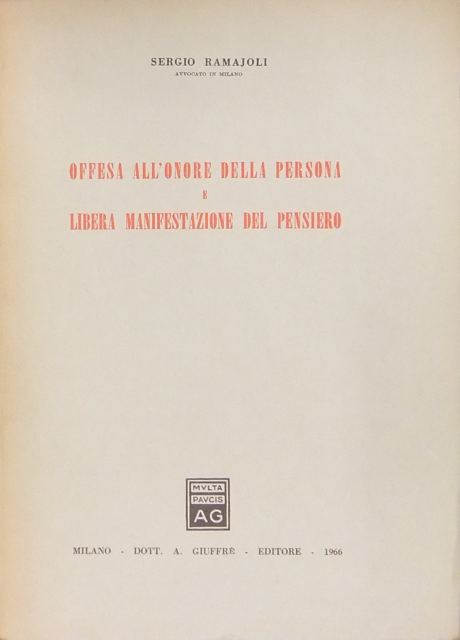 Offesa all'onore della persona e libera manifestazione del pensiero | Libros antiguos y modernos | Ramajoli Sergio