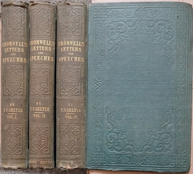 Name to front end paper of each volume. No other added marks or inscriptions. No creasing to covers or to spines. Clean pages with unmarked lightly rubbed embossed green cloth boards, well rubbed ends of sunned spines, very dusty page edges and minor bumping to most corners. Foxing to some pages, damp effect to Volume I end papers only and slight loosening of some hinges and spine strips. 445 + 434 + 532pp. The enlarged second edition of Cromwell's letters and speeches. A heavy set.