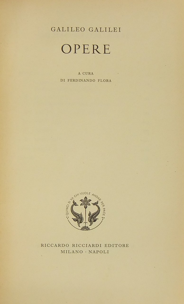 Opere. A cura di Ferdinando Flora | Libros antiguos y modernos | Galilei Galileo (1564-1642)