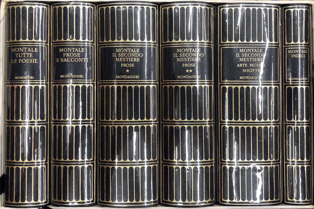 Opere complete: Tutte le poesie, a cura di Giorgio Zampa; Prose e racconti, a cura e con introduzione di Marco Forti; Il secondo mestiere: Prose 1920-1979, a cura di Giorgio Zampa; Il secondo mestiere: Arte, Musica, Società, a curadi Giorgio Zampa; Indici delle opere in prosa, a cura di Ferruccio Cecco e Liliana Orlando con la collaborazione di Paola Italia | Libros antiguos y modernos | Montale Eugenio (1896-1981)