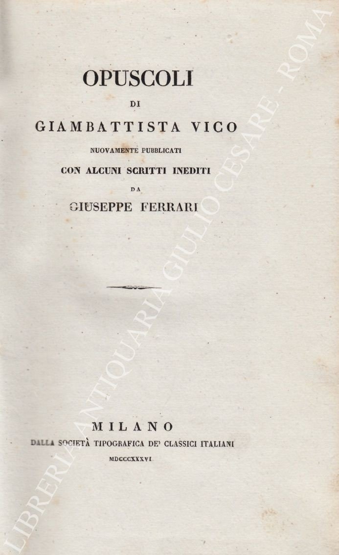Opuscoli di Giambattista Vico nuovamente pubblicati con alcuni scritti inediti da Giuseppe Ferrari | Libros antiguos y modernos | Vico Giambattista (1668-1744)