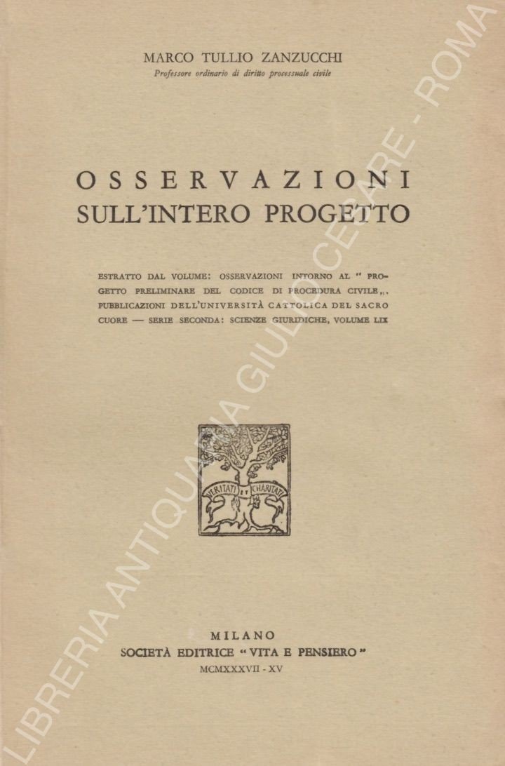 Osservazioni sull'intero progetto. Estratto dal volume: Osservazioni intorno al "Progetto preliminare del codice di procedura civile" | Libros antiguos y modernos | Zanzucchi Marco Tullio (1884-1948)
