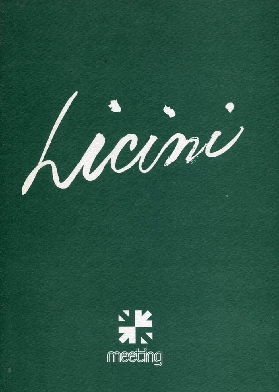 Brochure della mostra organizzata in occasione del 100° dalla nascita di Licini, presso la Galleria d'arte Meeting, Mestre, 15 ottobre - 11 novembre. Presentazione di Stefano De Rosa.Con 23 illustrazioni in bianco e nero. Nota biografica . Cm 24x17. pp. 16. . Ottimo (Fine). . . .