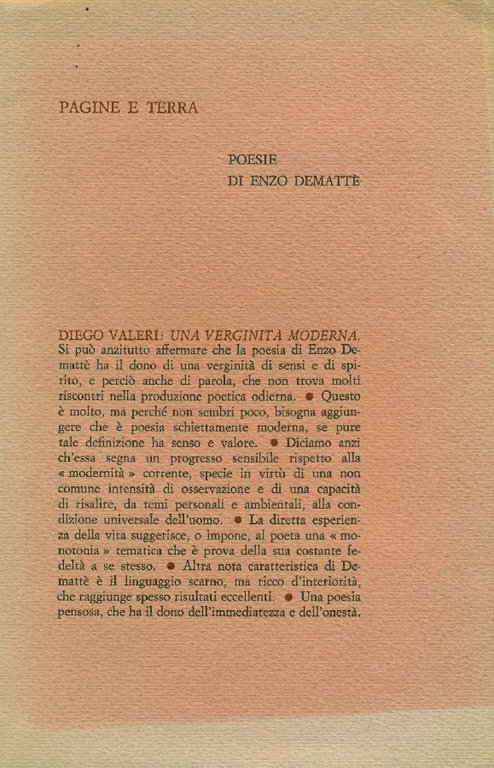 Pagine e terra | Libros antiguos y modernos | DEMATTE'' Enzo,