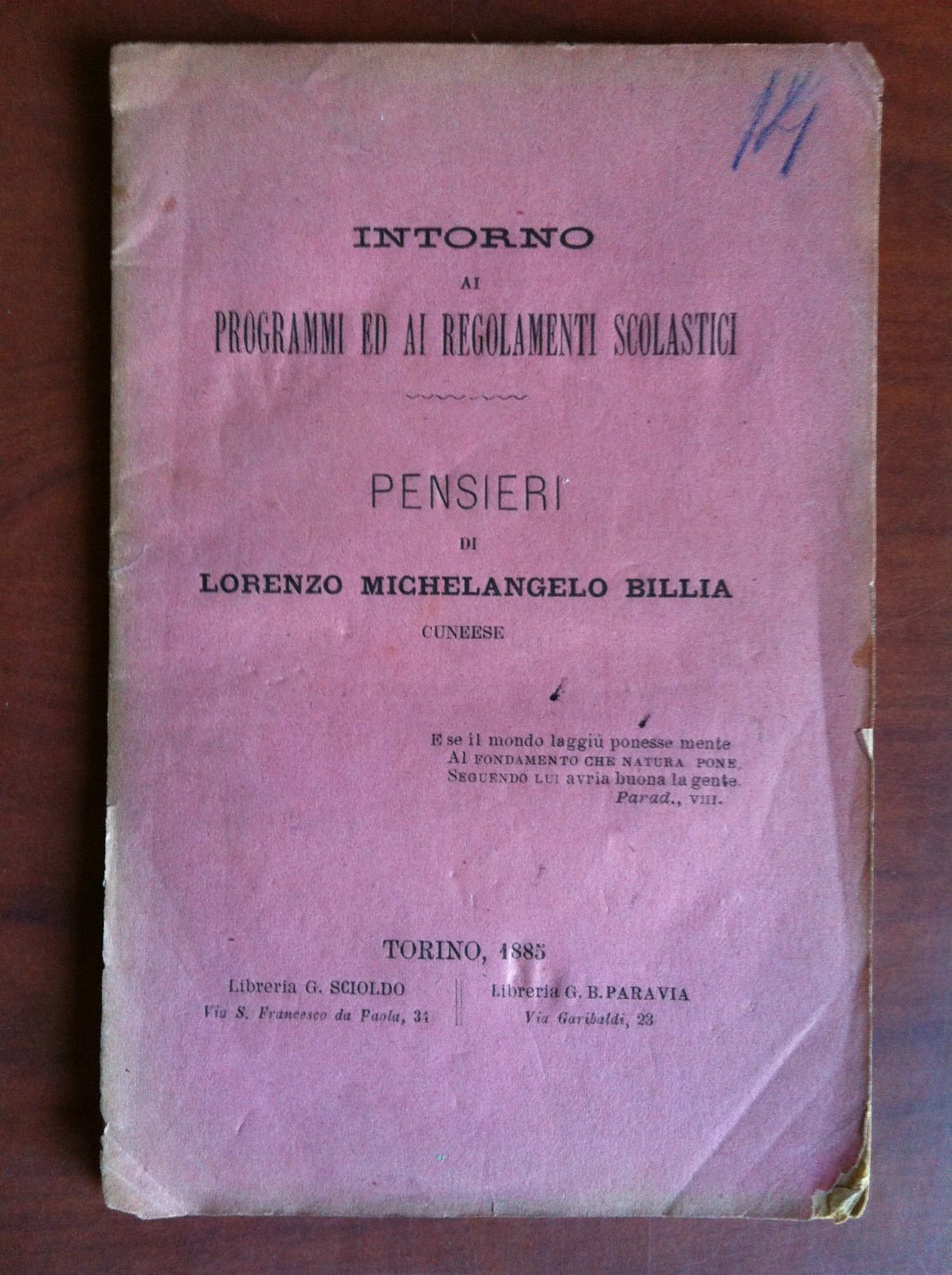 Pensieri intorno ao programmi e regolamenti scolastici di Billia 1885 - E9807