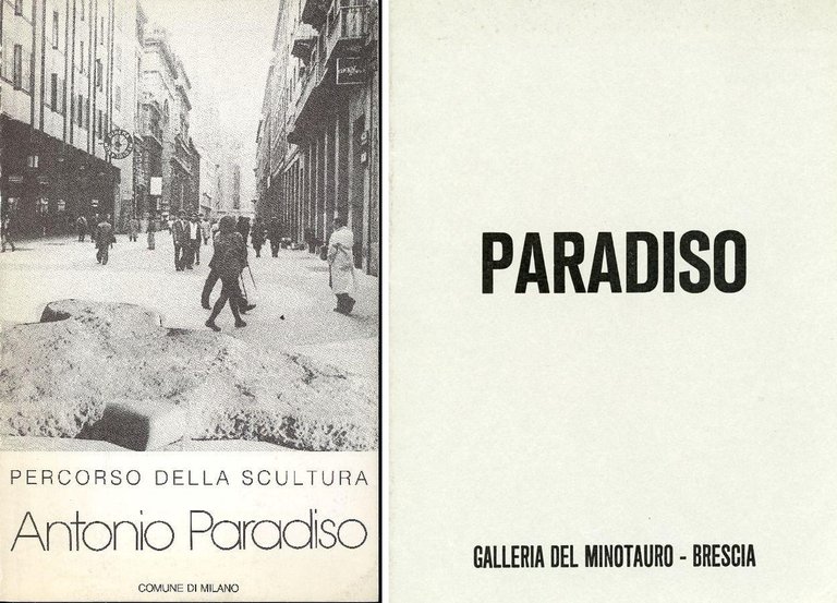 Catalogo di mostra, Milano, Corso Vittorio Emanuele, maggio-agosto 1988, a cura di Elio Santarella. Testo di Mario Perazzi e Anna D'Elia. 31 ill. in nero. Con attività espositiva . 8vo. pp. 24 n.n.. . Ottimo (Fine). . . . Si aggiunge un secondo catalogo dell'Artista: Paradiso, testo di Marco Valsecchi. Galleria del Minotauro, Brscia 31 maggio-20 giugno 1969. pp. 8 (Ottimo)