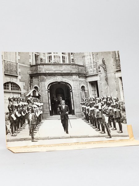 Photo format 18 x 13 cm, Photo D.N.P., P. Viguier, V 46.258 : Photo d'archives de presse : Monsieur le Président Laval, Chef du Gouvernement sortant du Pavillon Sévigné à l'issue du Conseil des Ministres et de la Prestation de Serment au Maréchal du Conseil Supérieur de la Légion d'Honneur Bon état pour ce très intéressant document.