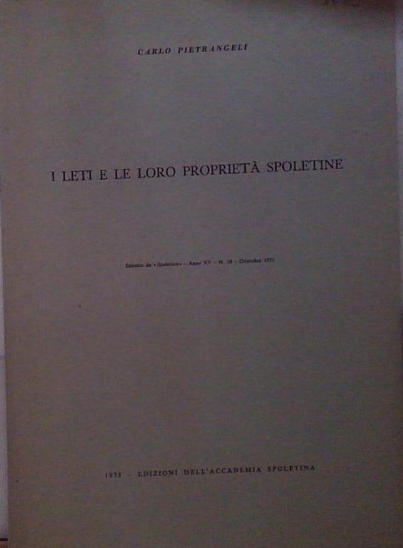 Pietrangeli I LETI E LE LORO PROPRIETÀ SPOLETINE | Libros antiguos y modernos | pietrangeli