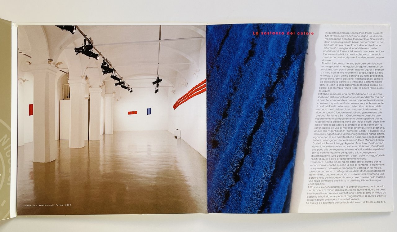 Catalogo di mostra, Galleria d'Arte Niccoli, Parma, 5 ottobre - 6 novembre 2002. A cura di Giorgio Bonomi. 10 tavole a colori sciolte in tasca e un poster ripiegato con al fronte una foto di un'opera e al verso testo del curatore in italiano e inglese, biografia e mostre (cm 100x42) . Cm 21x21,5. pp. 10 + 1. . Molto buono (Very Good). . . .