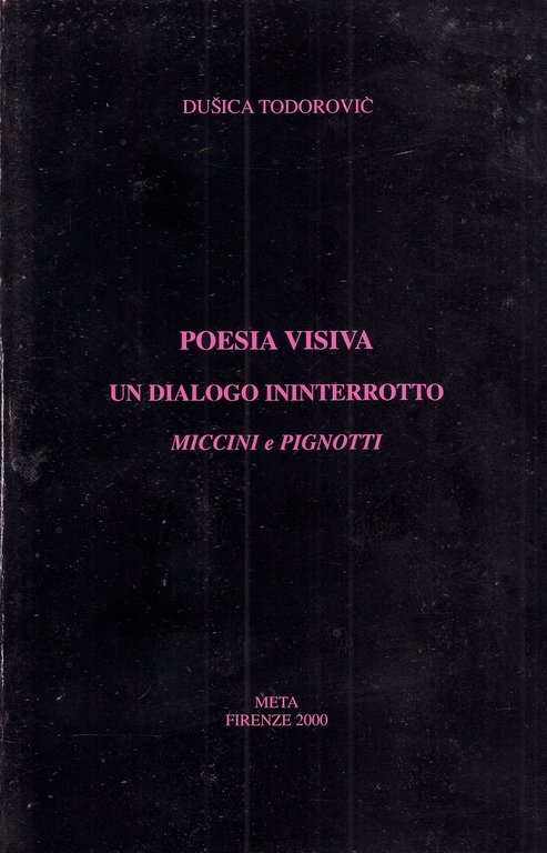 Volume pubblicato in occasione della mostra "L'Immagine della Parola" tenutesi nel 2000 presso le gallerie bolognesi: Galleria De' Foscherari, L' Ariete, Otto Arte Contemporanea, Spazia, Studio Cavalieri, Studio G 7, Banca Popolare di Milano. Testo di Dusica Todorovic. 19 illustrazioni in bianco e nero (opere di Lamberto Pignotti ed Eugenio Miccini) . 16mo (cm 17x11). pp. 47. . Ottimo (Fine). . Edizione di 1000 esemplari. . "La Poesia Visiva di Miccini e Pignotti - e questo secondo me è cruciale - è un dialogo continuo con la propria istituzione originaria, che dirotta per altre vie, un dialogo motivato da urgenze di comunicazione e anche da una messa in discussione dei propri fini e dei propri mezzi espressivi".