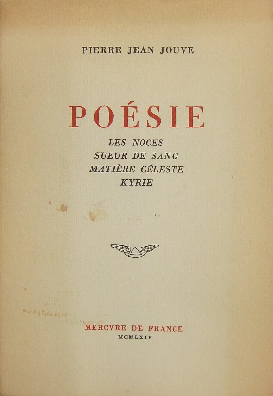 Poesie. Les noces; Sueur de sang; Matiere celeste; Kyrie | Libros antiguos y modernos | Jouve Pierre Jean