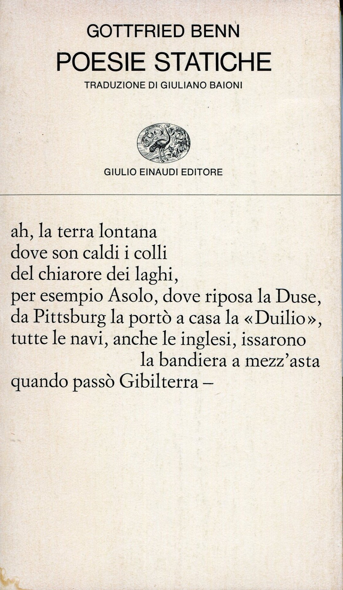 Poesie statiche. Introduzione e traduzione di Giuliano Baioni