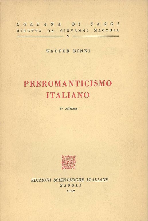 Preromanticismo italiano | Libros antiguos y modernos | BINNI, Walter (Perugia 1913-1997)