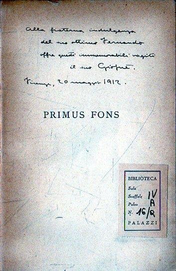Prima edizione con dedica e firma dell'autore! Primus Fons: Versi | Libros antiguos y modernos | Borsi, Giosuè, ,Borsi, Giosuè