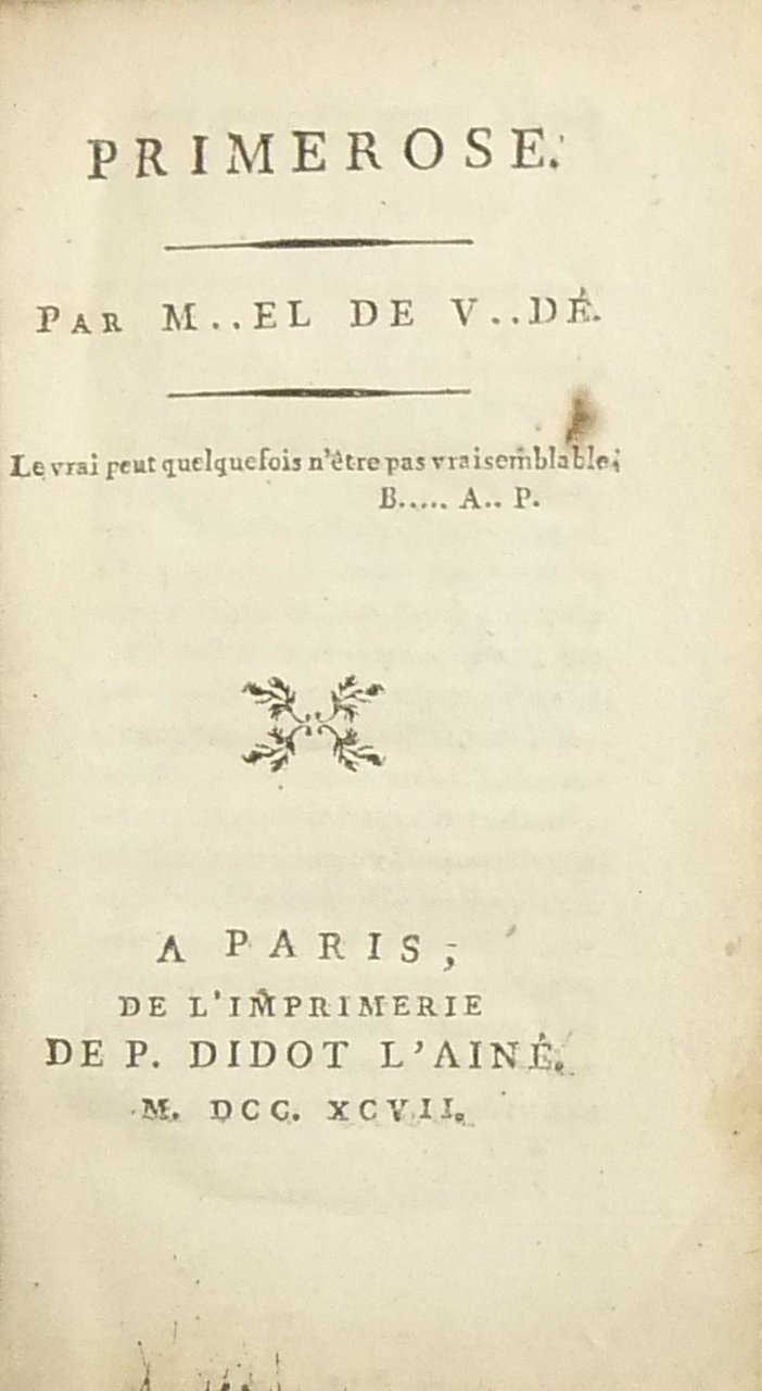 Primerose. Par M.el de V.dé | Libros antiguos y modernos | Morel De Vinde Charles Gilbert (Visconte Di Terray) (1759-1842)