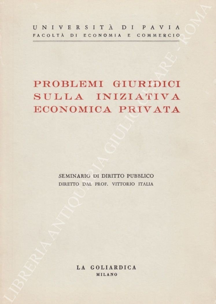 Problemi giuridici sulla iniziativa economica privata. Seminario di diritto pubblico diretto dal prof. Vittorio Italia