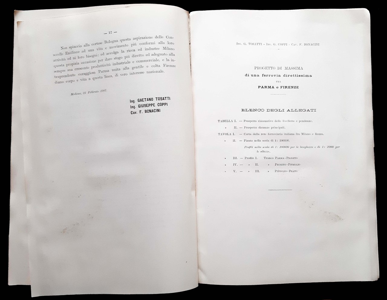 Progetto di massima di una ferrovia direttissima Parma-Firenze. | Libros antiguos y modernos | Tosatti, Gaetano - Bonacini, Francesco - Coppi, Giuseppe