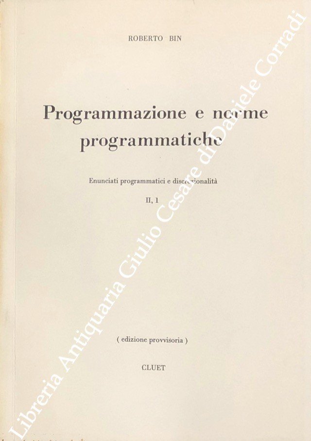 Programmazione e norme programmatiche. Enunciati programmatici e discrezionalità. Vol. II,1 (edizione provvisoria) | Libros antiguos y modernos | Bin Roberto
