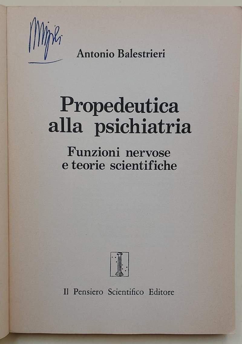 PROPEDEUTICA ALLA PSICHIATRIA -FUNZIONI NERVOSE E TEORIE SCIENTIFICHE (1983) | Libros antiguos y modernos | Balestrieri, Antonio