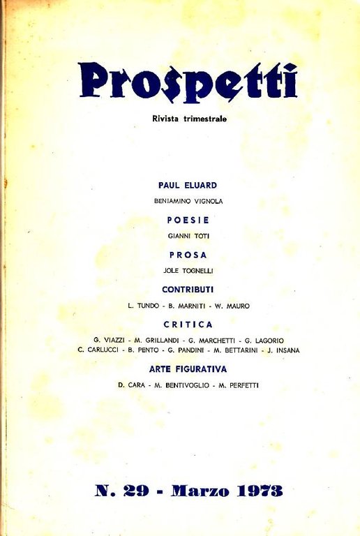Prospetti. Anno VIII - N. 29 - Marzo 1973 | Libros antiguos y modernos | PROSPETTI Rivista trimestrale di cultura,