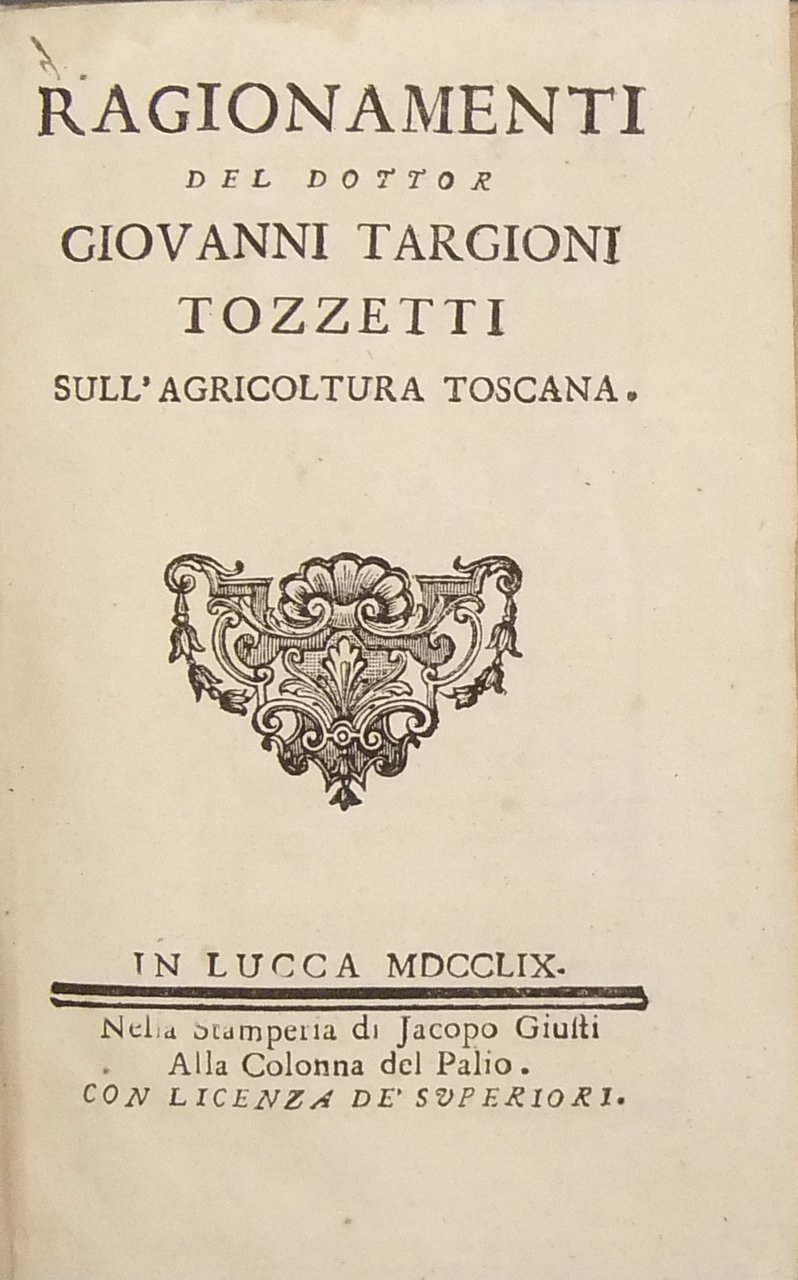 Ragionamenti del dottor Giovanni Targioni Tozzetti sull'agricoltura toscana | Libros antiguos y modernos | Targioni Tozzetti Giovanni