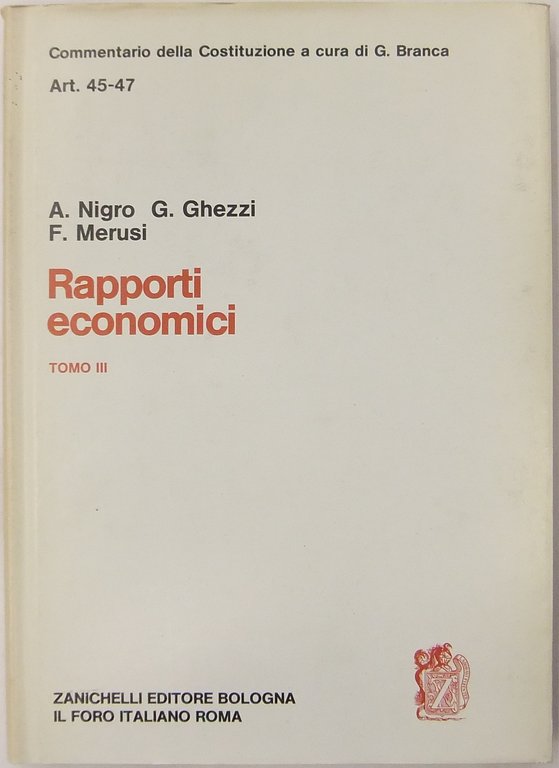 Rapporti economici. Tomo III - Art. 45-47 | Libros antiguos y modernos | Nigro Alessandro - Ghezzi Giorgio - Merusi Fabio