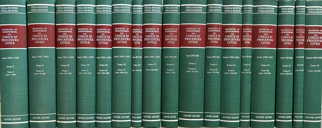 Rassegna di giurisprudenza del codice di procedura civile. Anni 1991-1995: Vol. I (Artt. 1-98); Vol. II (Artt. 99-162); Vol. III (Artt. 163-322); Vol. IV (Artt. 323-359); Vol. V (Artt. 360-408); Vol. VI (Artt. 409-473); Vol. VII (Artt. 474-632); Vol. VIII (Artt. 633-840). Anni 1999-2001: Vol. I (Artt. 1-74); Vol. II (Artt. 75-111); Vol. III (Artt. 112-162); Vol. IV (Artt. 163-310); Vol. V (Artt. 311-359); Vol. VI (Artt. 360-408); Vol. VII (Artt. 409-473); Vol. VIII (Artt. 474-632); Vol. IX (Artt. 633-840)