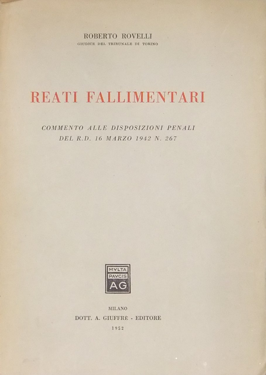 Reati fallimentari. Commento alle disposizioni penali del R.D. 16 marzo 1942 n. 267 | Libros antiguos y modernos | Rovelli Roberto