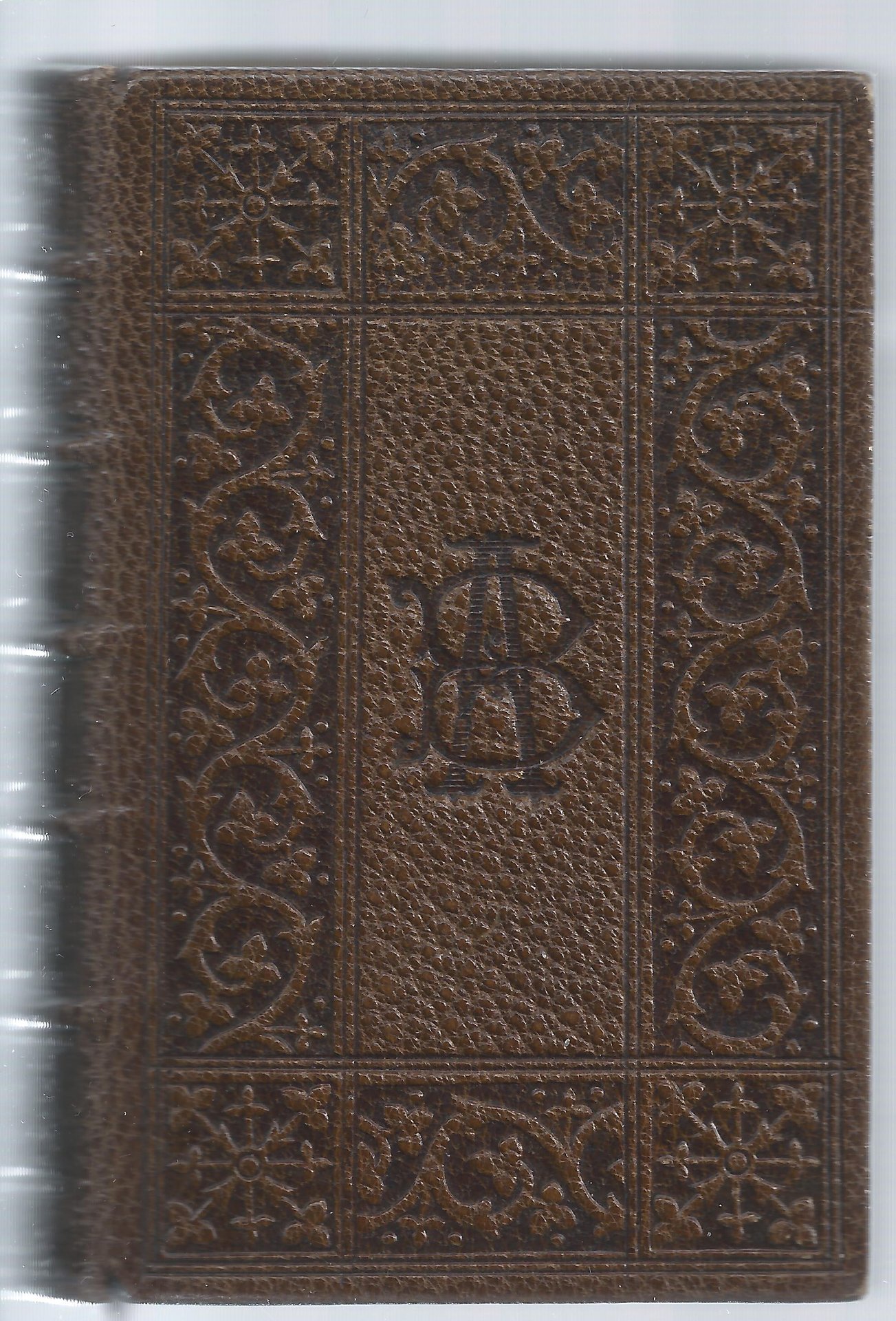 Mame 1880 Tours Alfred Mame 1880, In-16 relié plein maroquin marron, dos à nerfs et plats estampés à froid, monogramme A-B au 1er plat, toutes tranches dorées, large guirlande intérieure dorée à la roulette, filets dorés sur les coupes, gardes de soie à motifs de fleurs et insectes. 560 pages. Très bel exemplaire en parfait état.