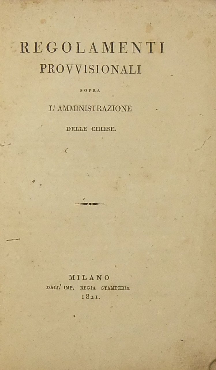 Regolamenti provvisionali sopra l'amministrazione delle chiese | Libros antiguos y modernos | Regno Lombardo-Veneto