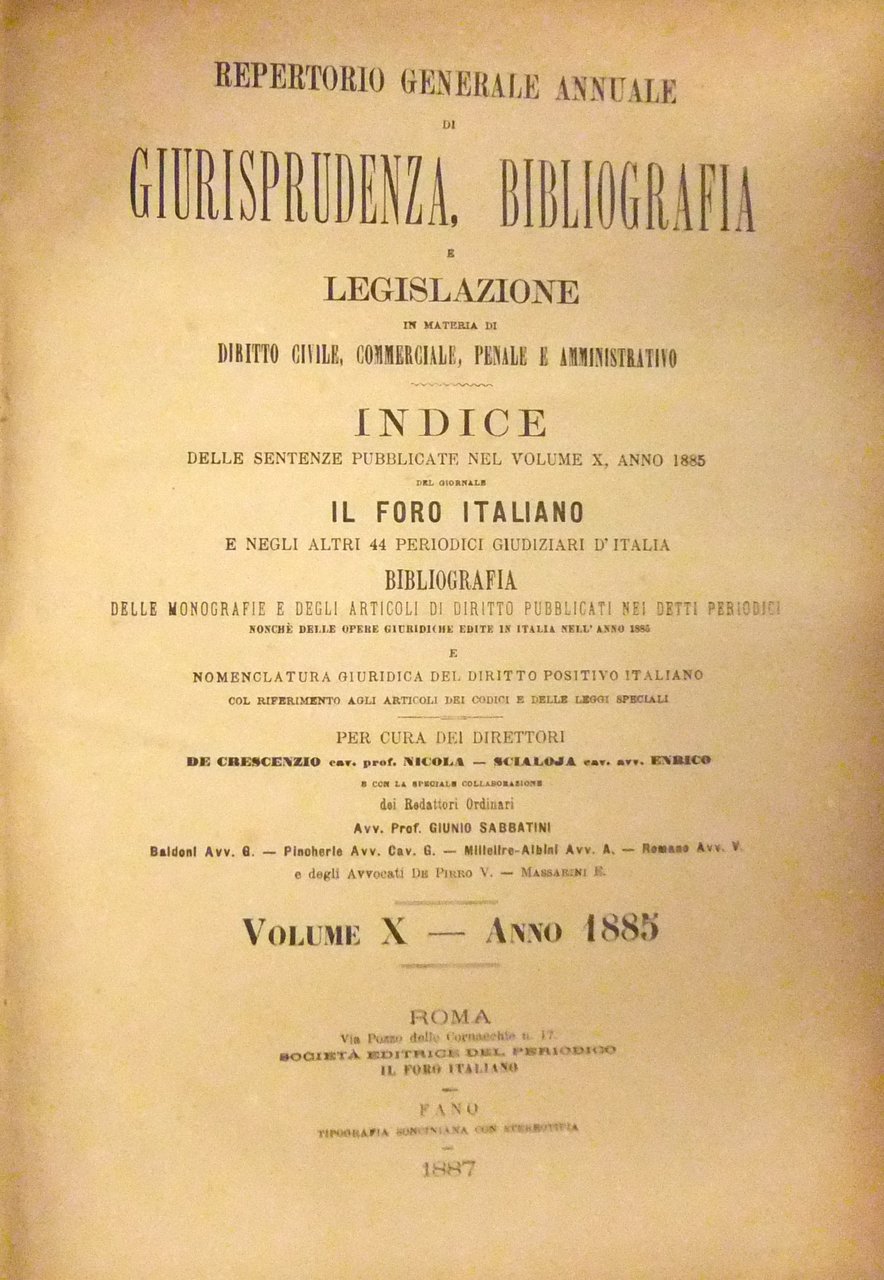 Repertorio Generale Annuale del Foro Italiano. Vol. X - Anno 1885 | Libros antiguos y modernos | Il Foro Italiano
