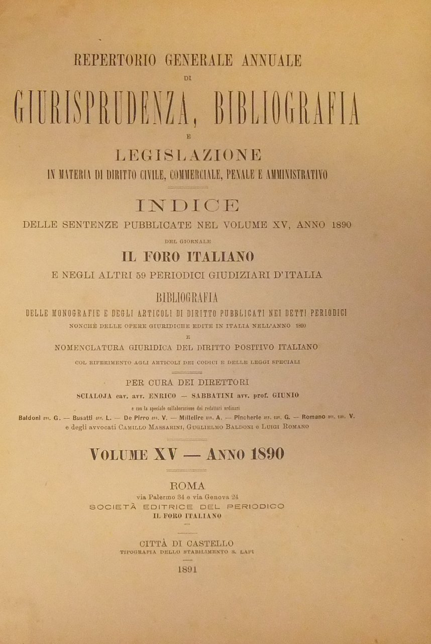 Repertorio Generale Annuale del Foro Italiano. Vol. XV - Anno 1890 | Libros antiguos y modernos | Il Foro Italiano
