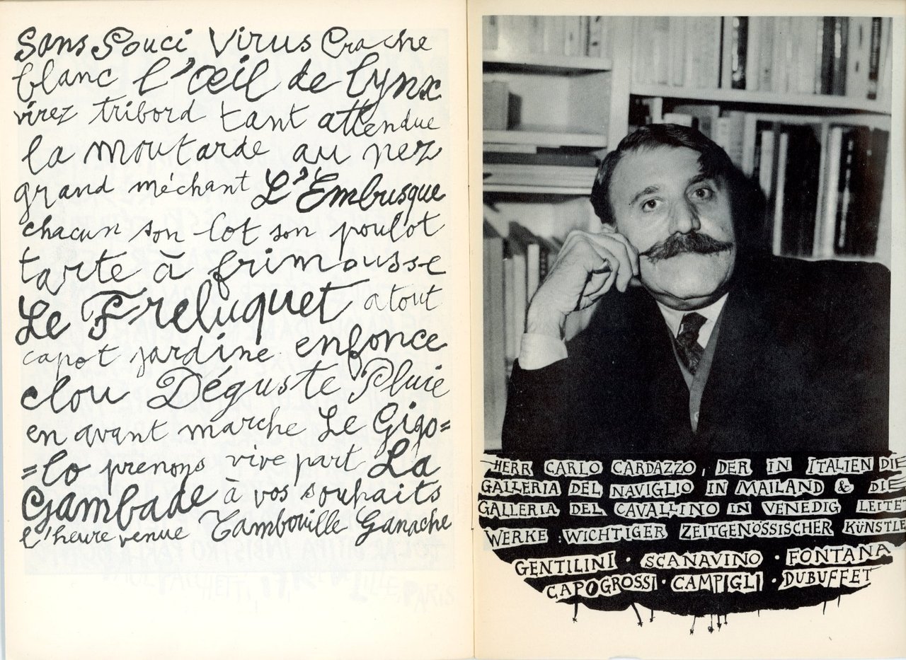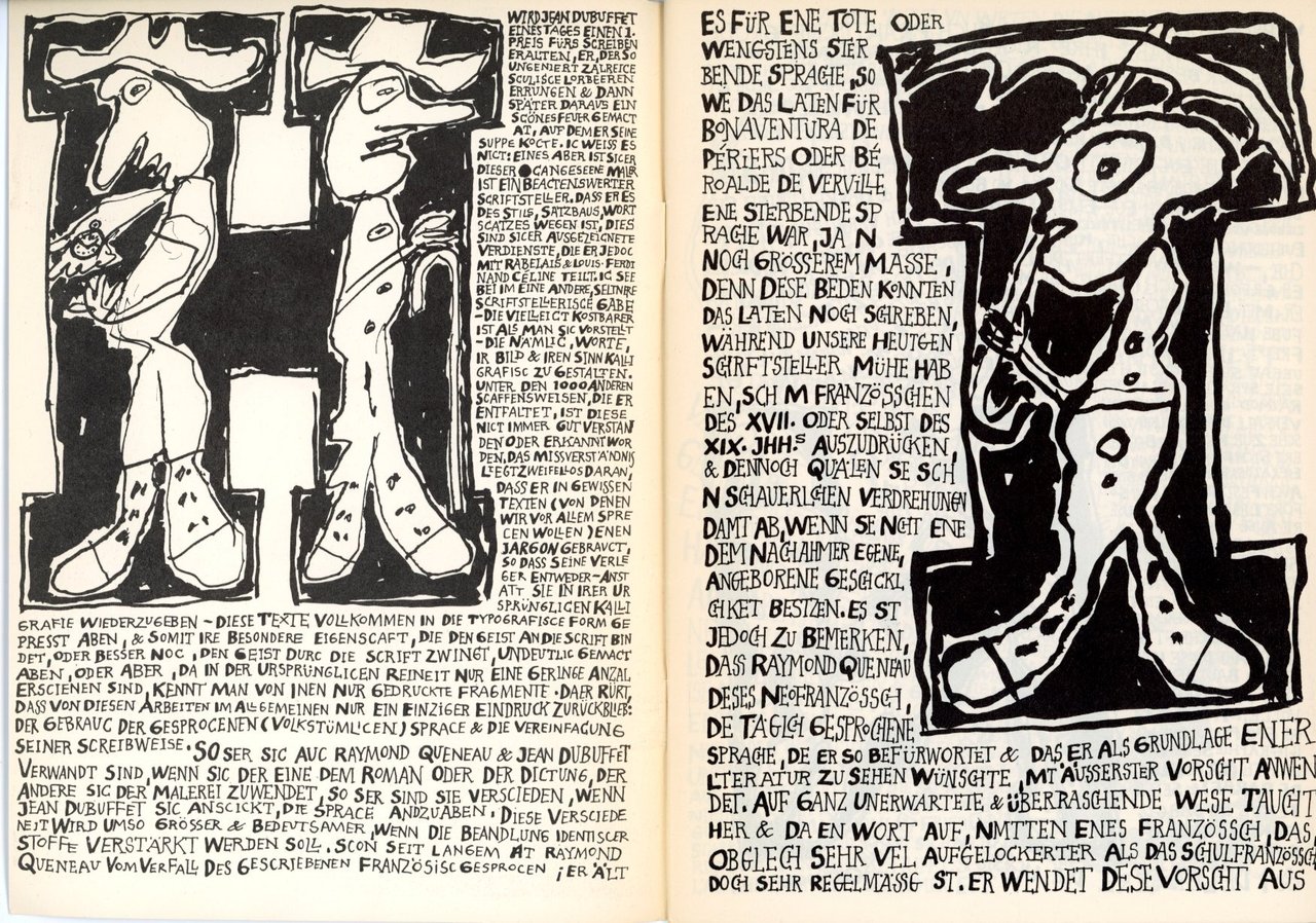 Libro d'artista con disegni e testi scritti a mano di Jean Dubuffet. A cura di Klaus-Peter Dienst e Rolf-Gunter Dienst. . Cm 21x15. pp. 24. . Ottimo (Fine). . Edizione originale (Original edition). .