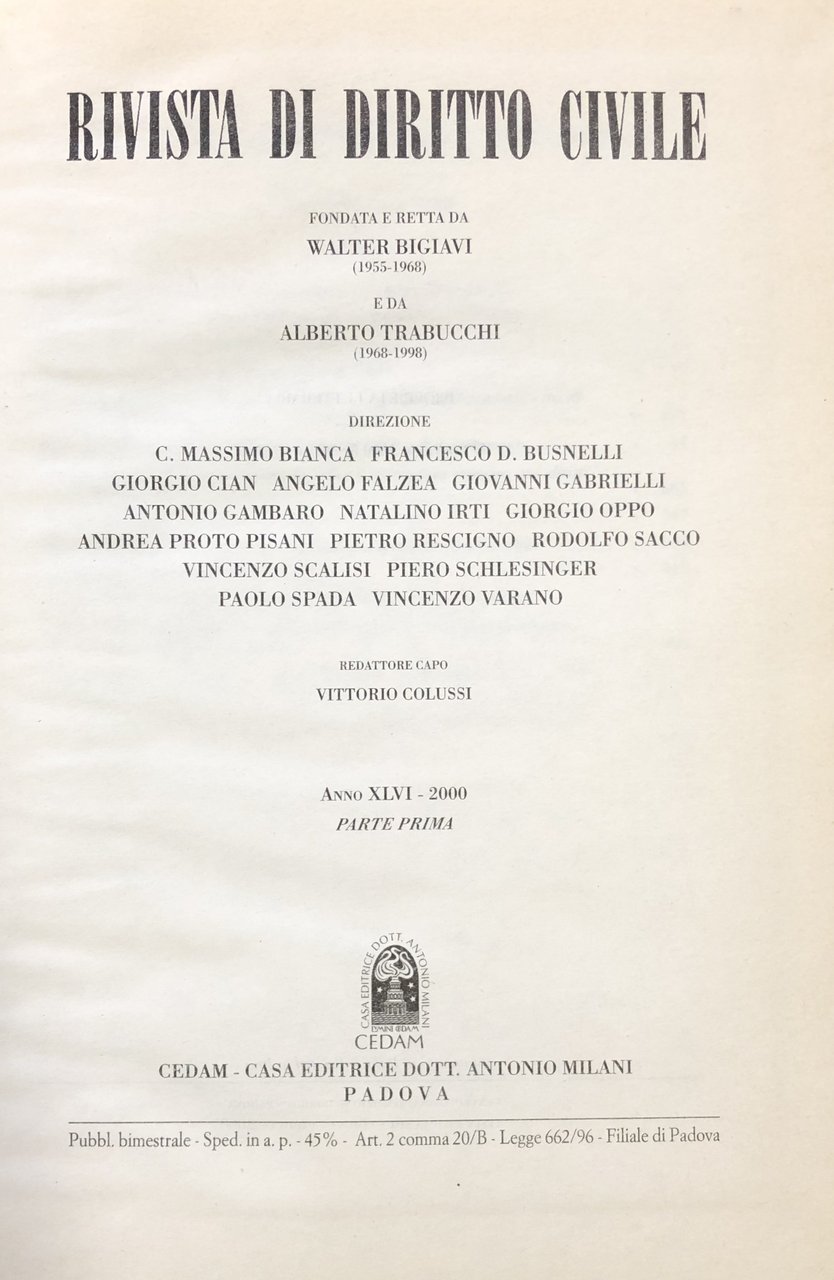 Rivista di diritto civile. Anno XLVI - 2000 | Libros antiguos y modernos | Autori Vari