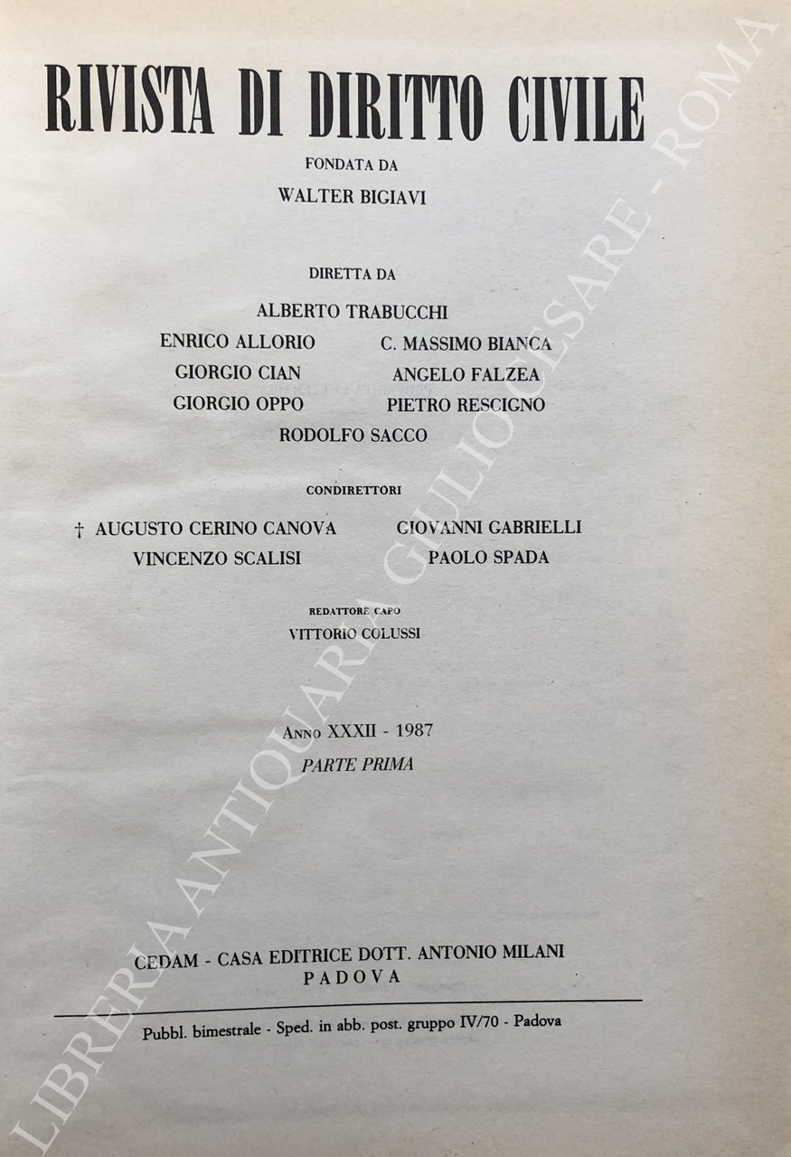 Rivista di diritto civile. Anno XXXIII - 1987 | Libros antiguos y modernos | Autori Vari