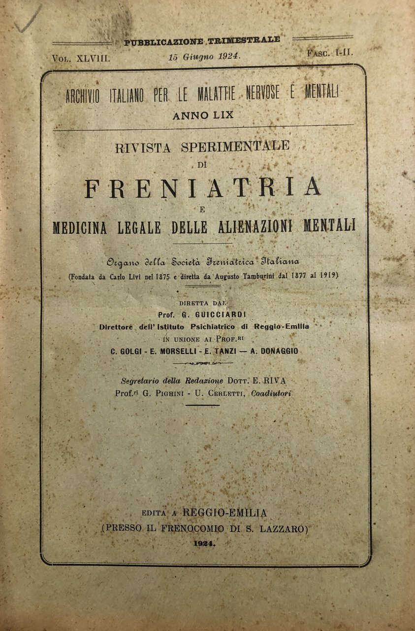 Rivista sperimentale di freniatria e di medicina legale delle alienazioni mentali. Organo della società freniatrica italiana. Vol. XLVIII - Anno 1924