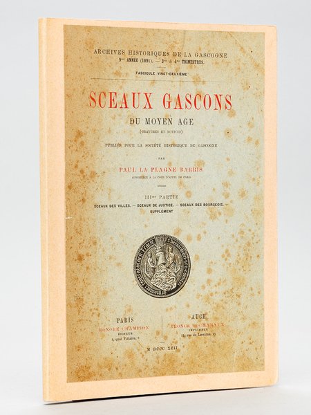 Sceaux gascons du Moyen Age. IIIe Partie : Sceaux des villes - Sceaux de Justice - Sceaux des Bourgeois - Supplément [ Edition originale ] | Libros antiguos y modernos | La Plagne Barris, Paul